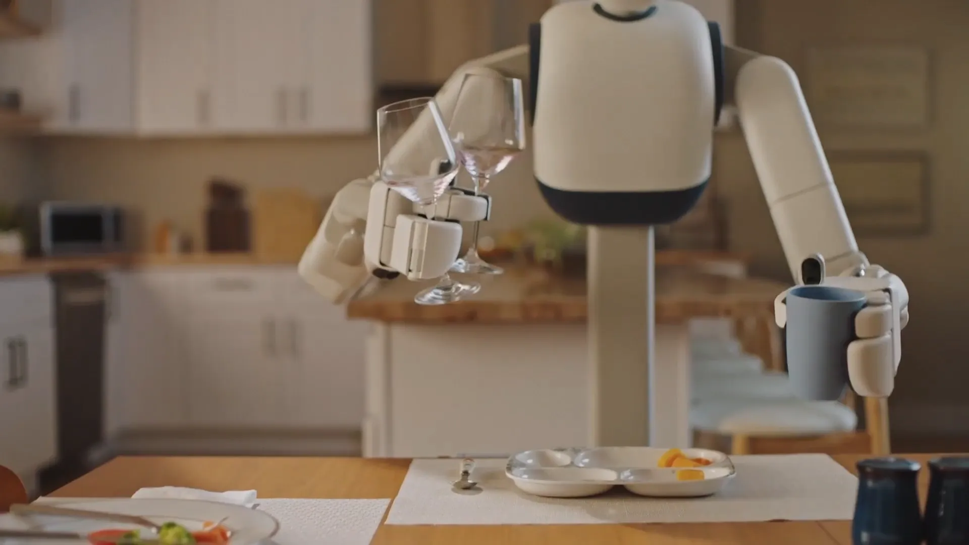 - Clearing Tables and Loading Dishwashers: This is Memo's showcase task, demonstrated publicly with the impressive statistics: 130+ feet of autonomous navigation, 33 unique interactions, 21 different objects including delicate dinnerware. Memo can clear a dinner table, transport items to the kitchen, properly load them into the dishwasher, and start the cycle.