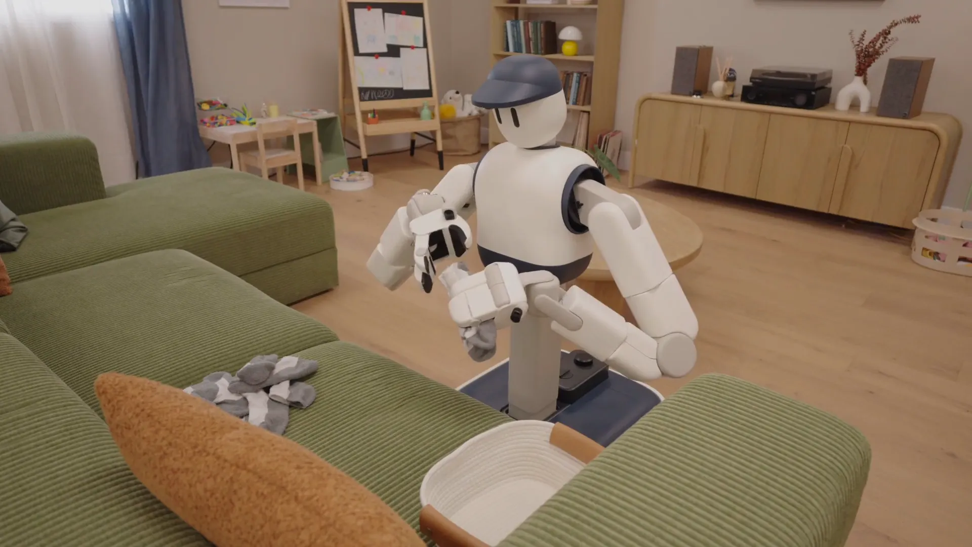 Need to pick up toys from the floor? Memo lowers down. Time to reach items on the counter? The torso extends upward. It's mechanically simpler than legs and hips, more reliable, and perfectly suited for the tasks Memo needs to perform.